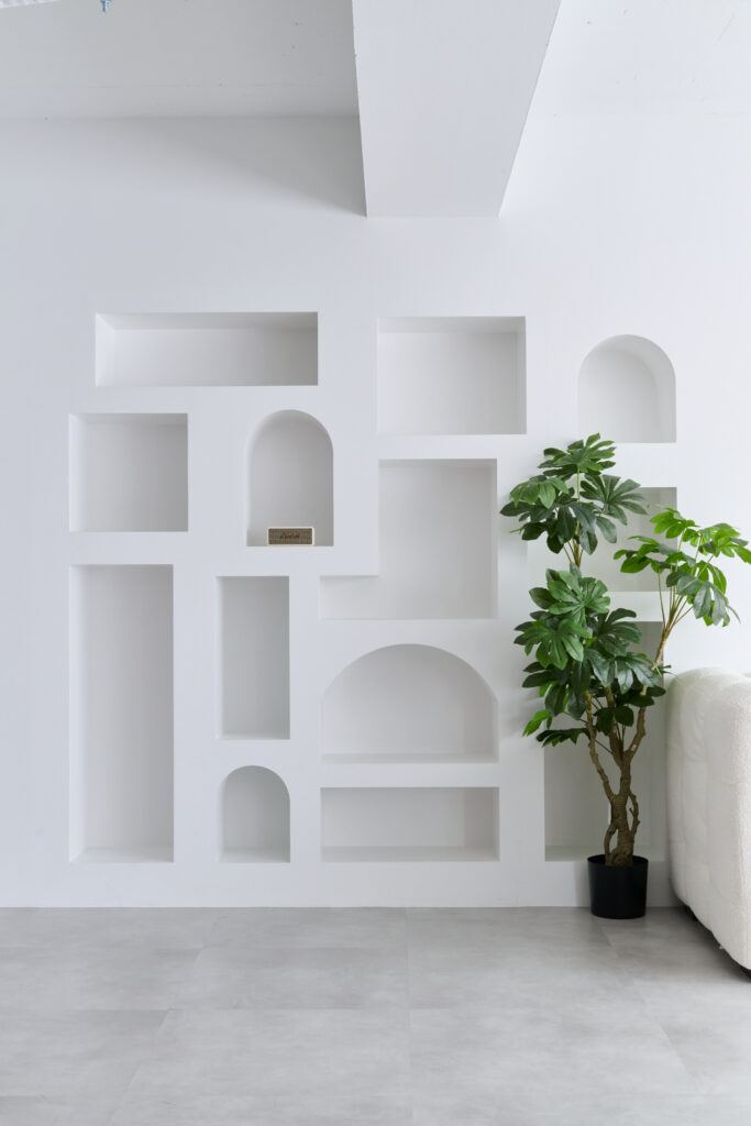 凸凹のあるユニークな壁は、背景にするだけでおしゃれな雰囲気を演出します。