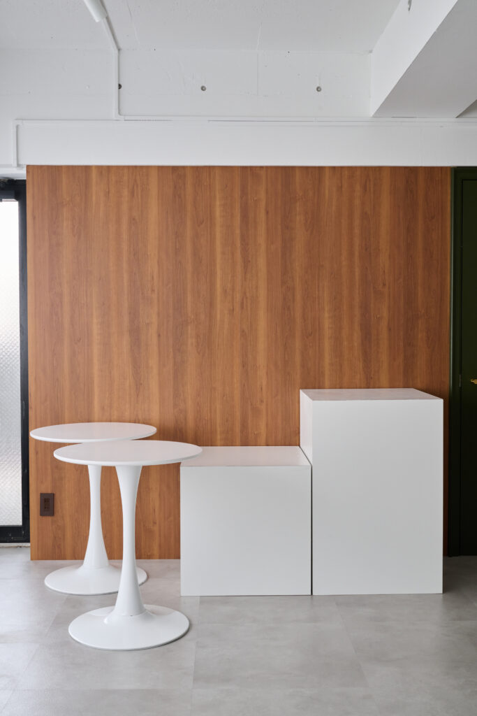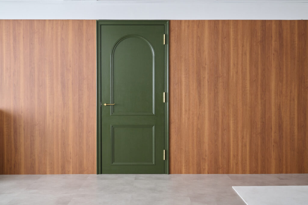 さらに、深いグリーンの扉と木の壁が空間に変化をもたらし、シーンごとに異なる表情を楽しめます。